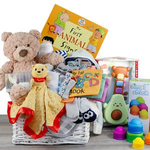 Deliver every bit of the joy you're feeling with this fabulous family basket -- filled with everything for the new baby boy and his proud new parents, too!