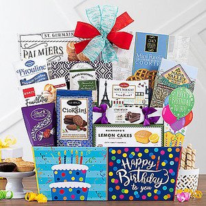 Let them know that you wish you could be there to celebrate with this heartwarming birthday collection. Ghirardelli dark chocolate squares, chocolate brownie, sweet and spicy snack mix, caramel corn, madeleine cakes, Ahmad green tea, Le Preziose fruit jelly candy, Vanilla fudge with sea salt and much more will help convey your best wishes.