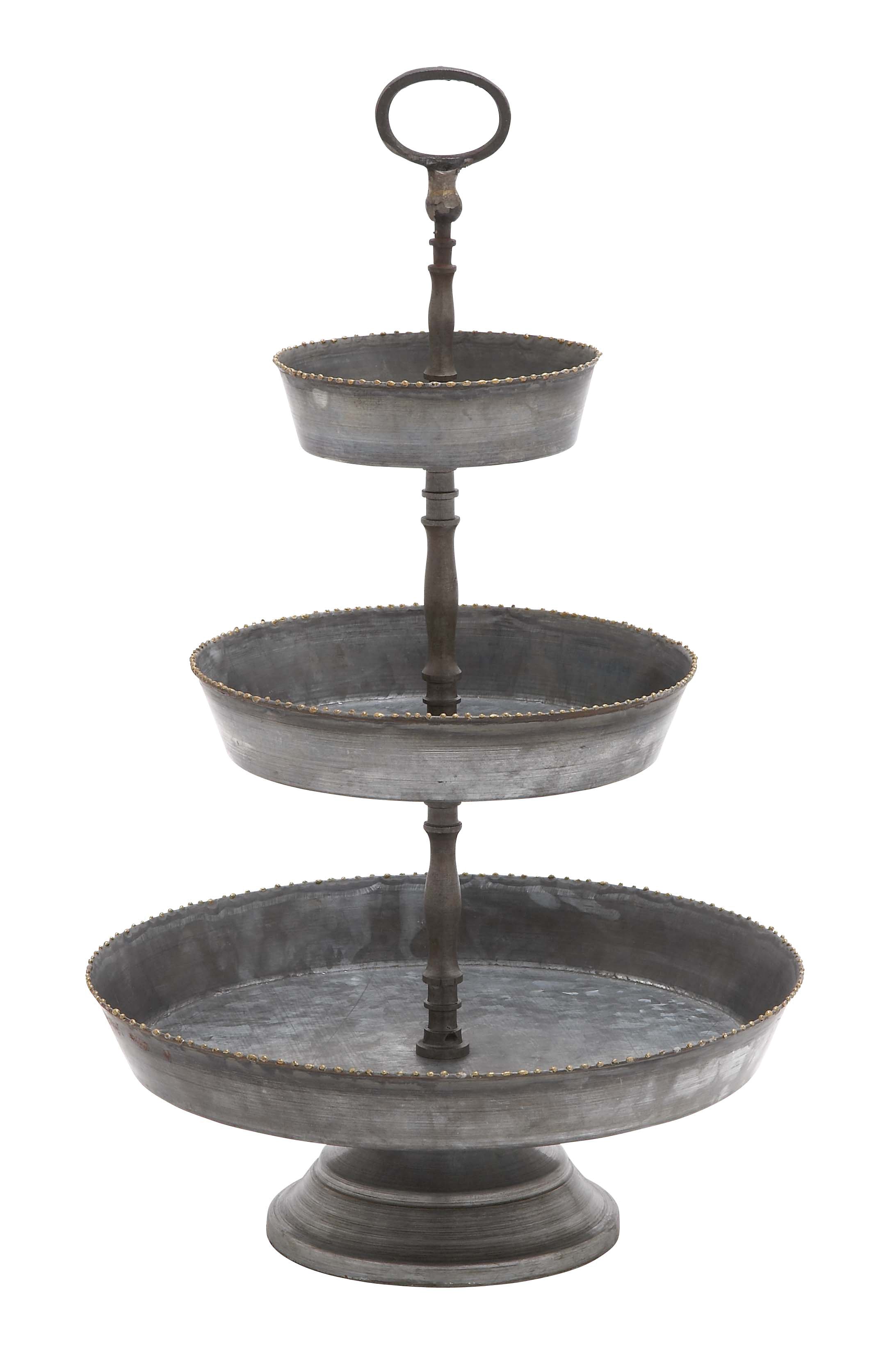 Galvanized 3 Tier Studded Tray In Metal, Silver Galvanized 3 Tier Studded Tray In Metal, Silver Galvanized 3 Tier Studded Tray In Metal, Silver