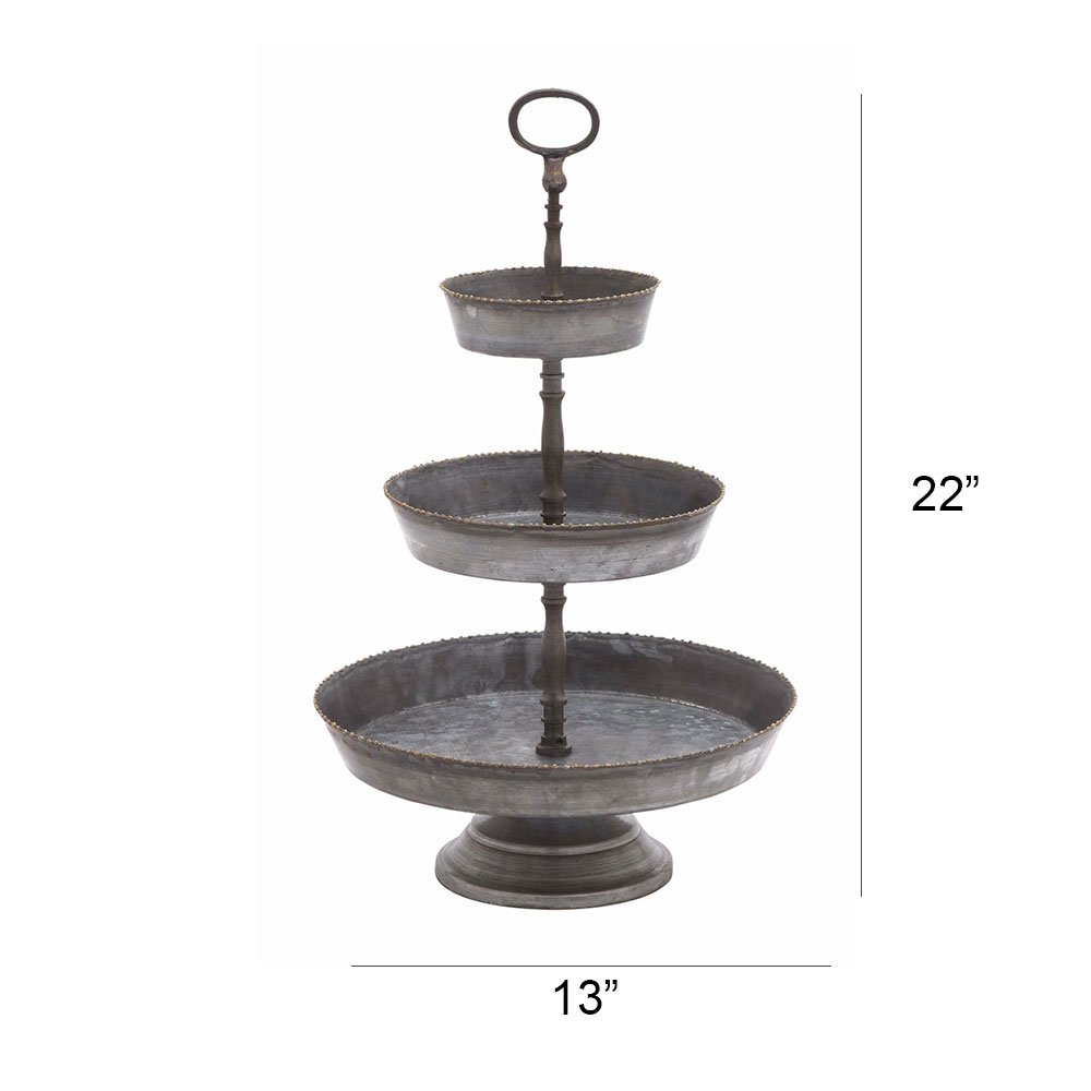 Galvanized 3 Tier Studded Tray In Metal, Silver