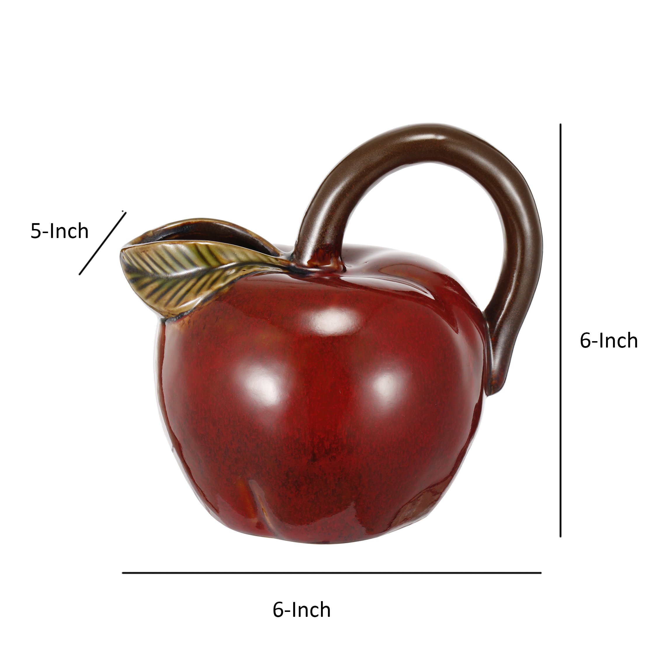 Ceramic Apple Pitcher with Leaf Shaped Spout, Red and Brown Ceramic Apple Pitcher with Leaf Shaped Spout, Red and Brown Ceramic Apple Pitcher with Leaf Shaped Spout, Red and Brown Ceramic Apple Pitcher with Leaf Shaped Spout, Red and Brown Ceramic Apple Pitcher with Leaf Shaped Spout, Red and Brown