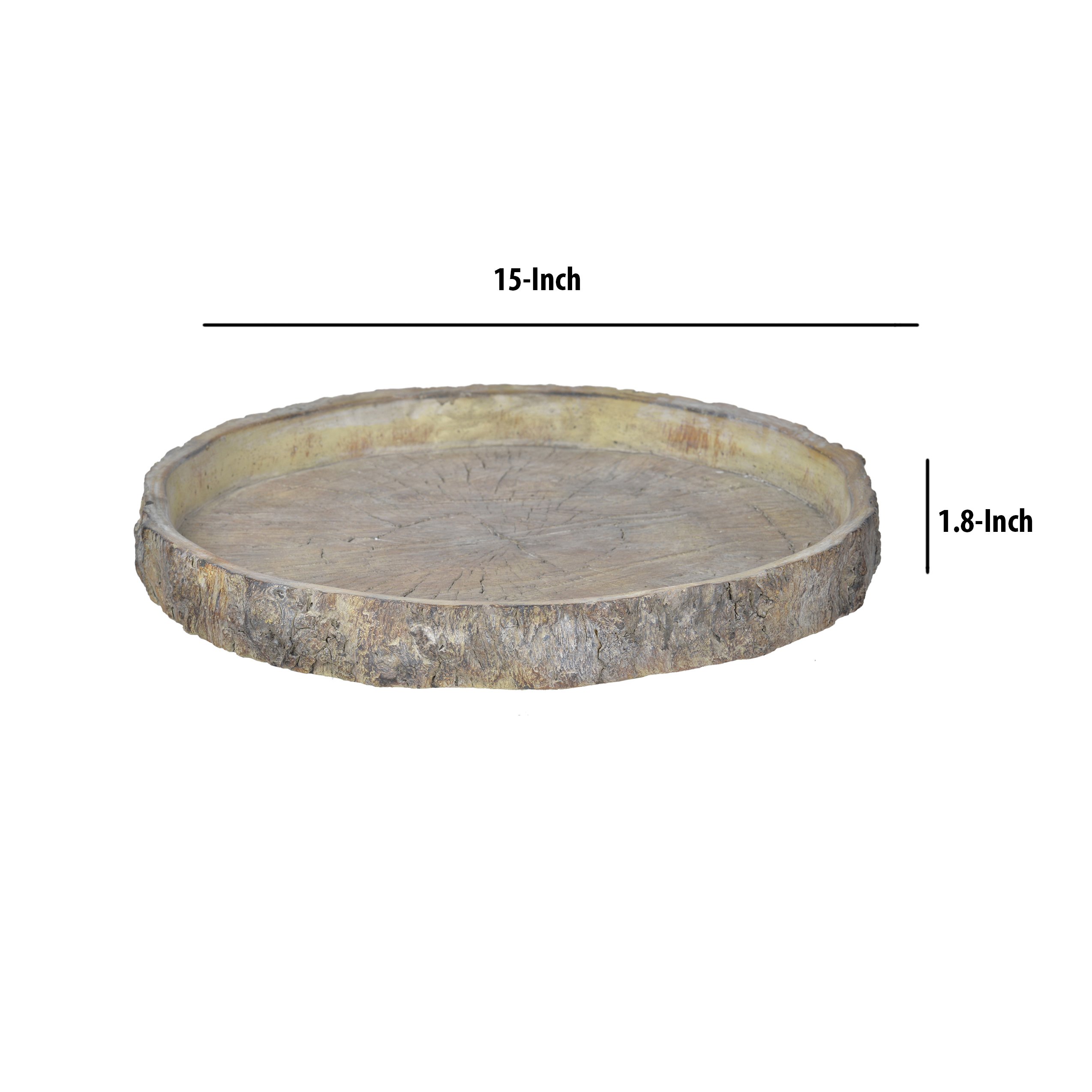 Composed of cement for facile care and designed to look like a slice of weathered tree trunk, this unique round shape log plate with detailed faux wood look offers a nature inspired element to your existing decor. Whether used as part of a table centerpiece, to hold beverages or snacks at a garden party, or as a general decorative element anywhere in the home, this piece is sure to add beauty and function to your decor.