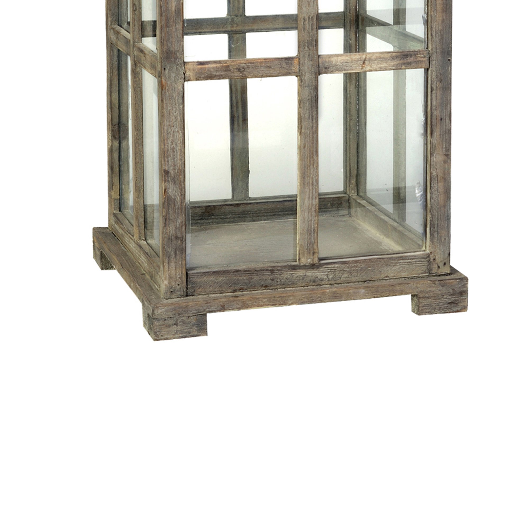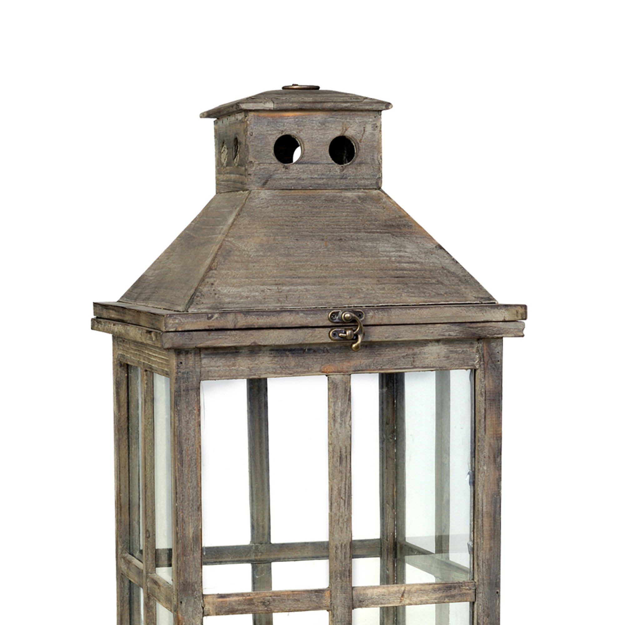 Light up your summer or winter nights with this Set of 2 traditional Lanterns that will bring a soft glow to your porch, patio, or poolside. The wood framing of these lanterns takes on the shape of a tall gazebo or airy temple and they are finished in a weathered texture to give the illusion of age. Just place you favorite candle inside these Lanterns and create an inviting atmosphere for your special indoor or outdoor area.