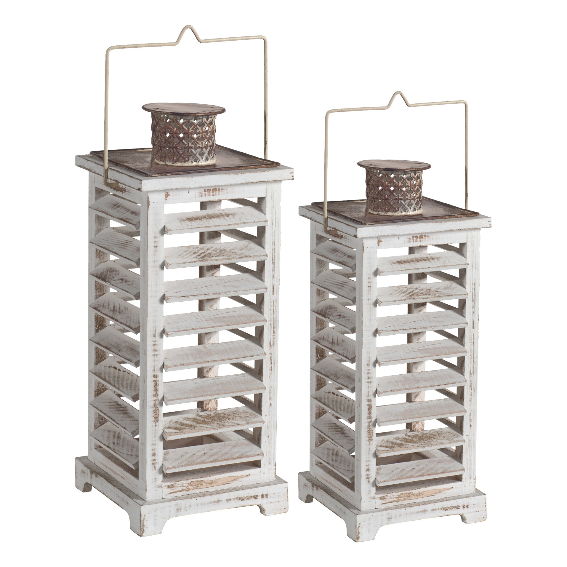 Home > Wood and Metal Lanterns with Louvered Design, White, Set of 2