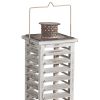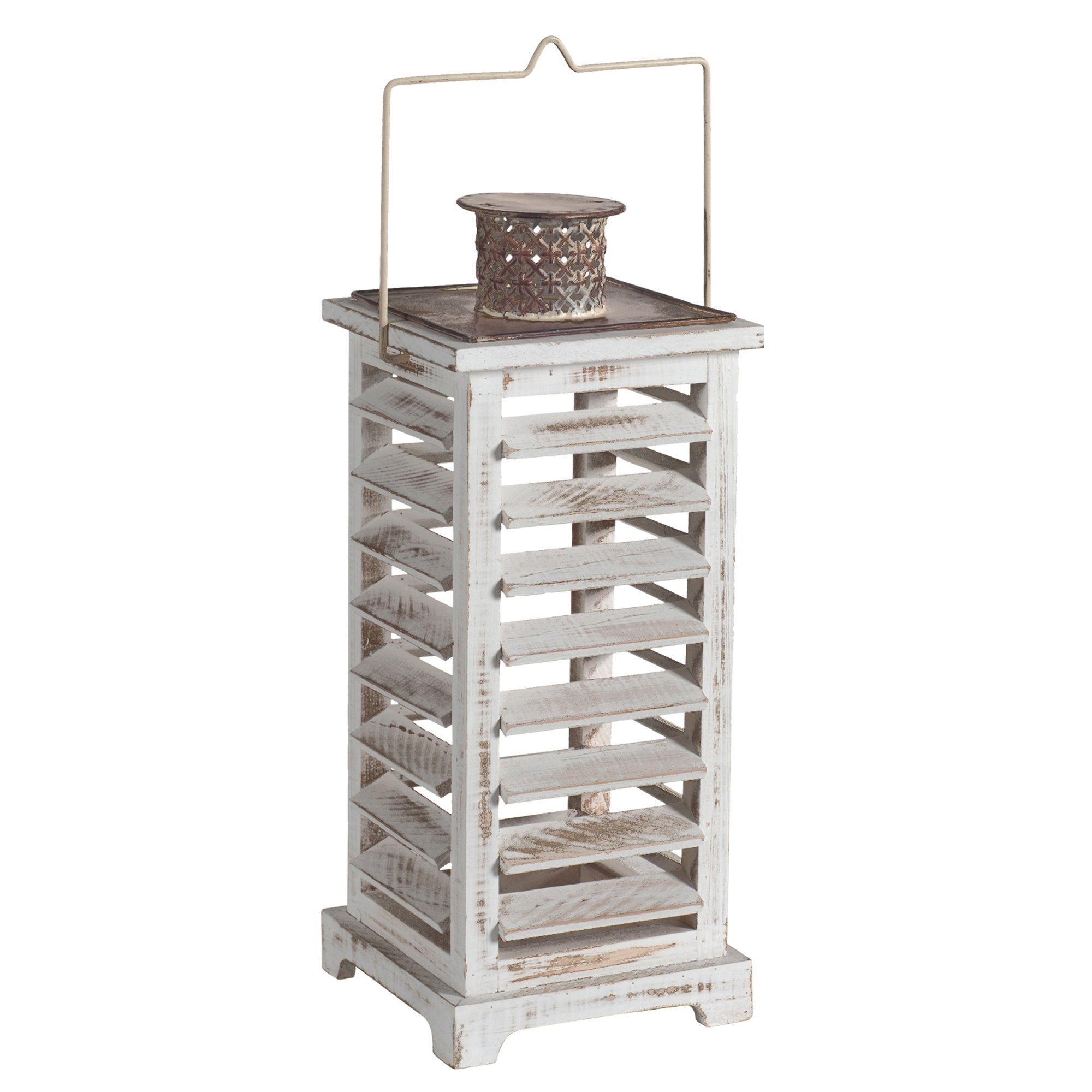 This set of two lanterns will illuminate your home with its warm glow. Constructed from durable wood in washed white, these lanterns feature louvered design and ornate metal details on top for a rustic look. Each lantern is fitted with a metal handle for you to easily carry or hang them wherever and whenever needed. Just place you favorite candle inside these Lanterns and create an inviting atmosphere for your special indoor or outdoor area.