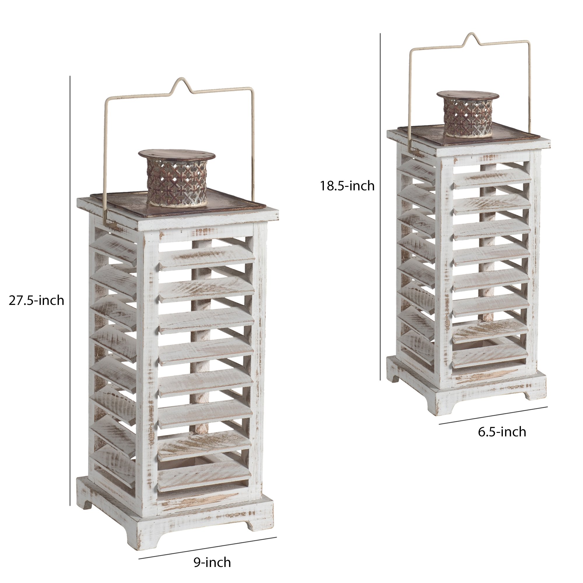 Wood and Metal Lanterns with Louvered Design, White, Set of 2 Wood and Metal Lanterns with Louvered Design, White, Set of 2 Wood and Metal Lanterns with Louvered Design, White, Set of 2 Wood and Metal Lanterns with Louvered Design, White, Set of 2 Wood and Metal Lanterns with Louvered Design, White, Set of 2