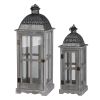 Home > Wood and Metal Lanterns with Glass Window Pane Design, Gray, Set of 2