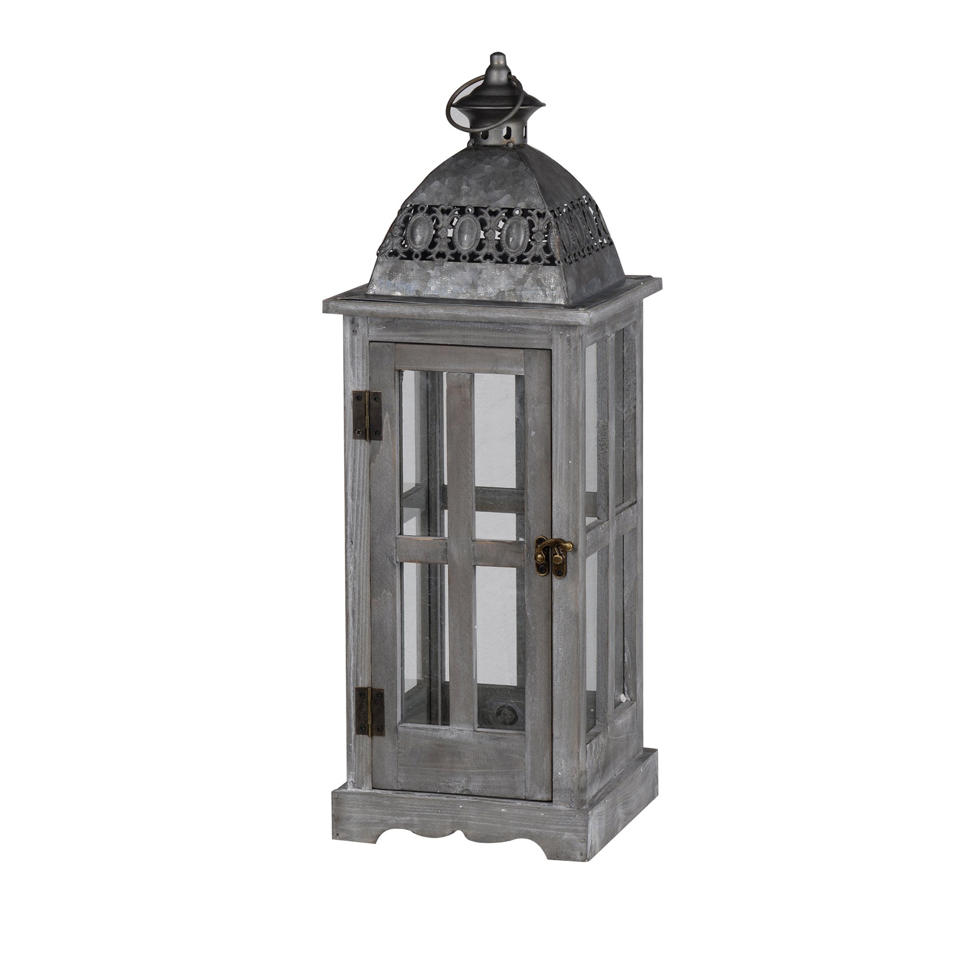 Light up your summer or winter nights with this Set of Two magical Lanterns that will bring a soft glow to your porch, patio, or poolside. Constructed from wood in rustic gray finish, these lanterns feature a traditional window pane frame, four glass panels, and decorative metal detailing on the top. Just place you favorite candle inside these Lanterns and create an inviting atmosphere for your special indoor or outdoor area.