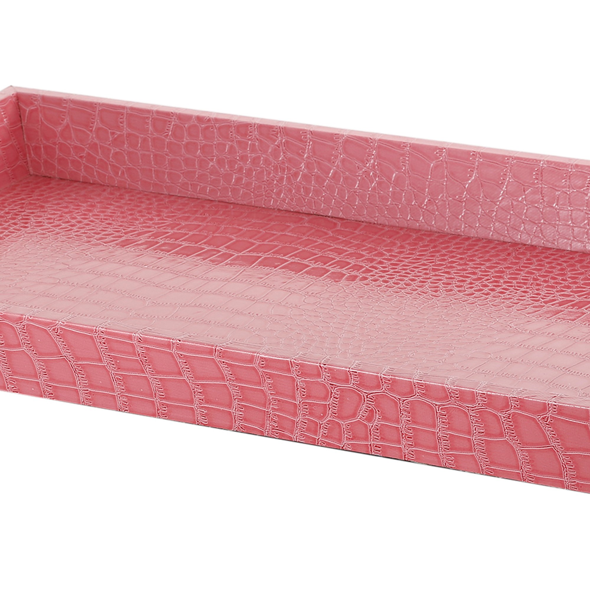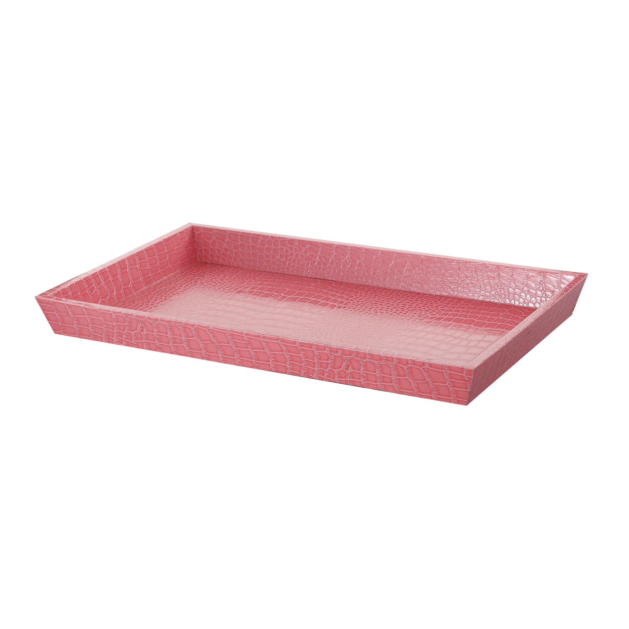 Whether displayed on its own or filled with decorative accents and small hors d'oeuvres, this rectangular decorative serving tray makes a gorgeous statement wherever it is placed. Constructed from wood and upholstered in pink faux leather, this tray features textured details on the surface. Use this tray to serve snacks, as a base for a centerpiece, or use it to display decor anywhere in your home.