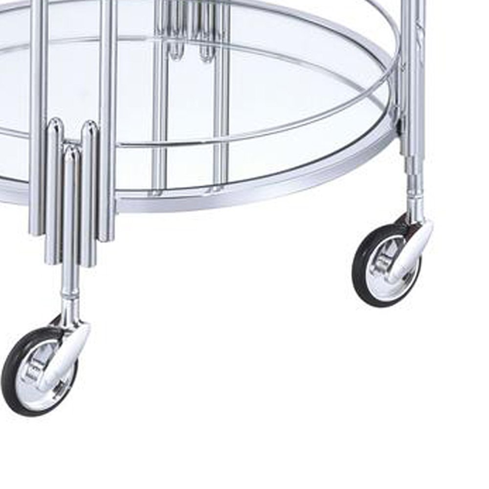 Metal and Mirror Round Serving Cart with Open Shelf, Silver