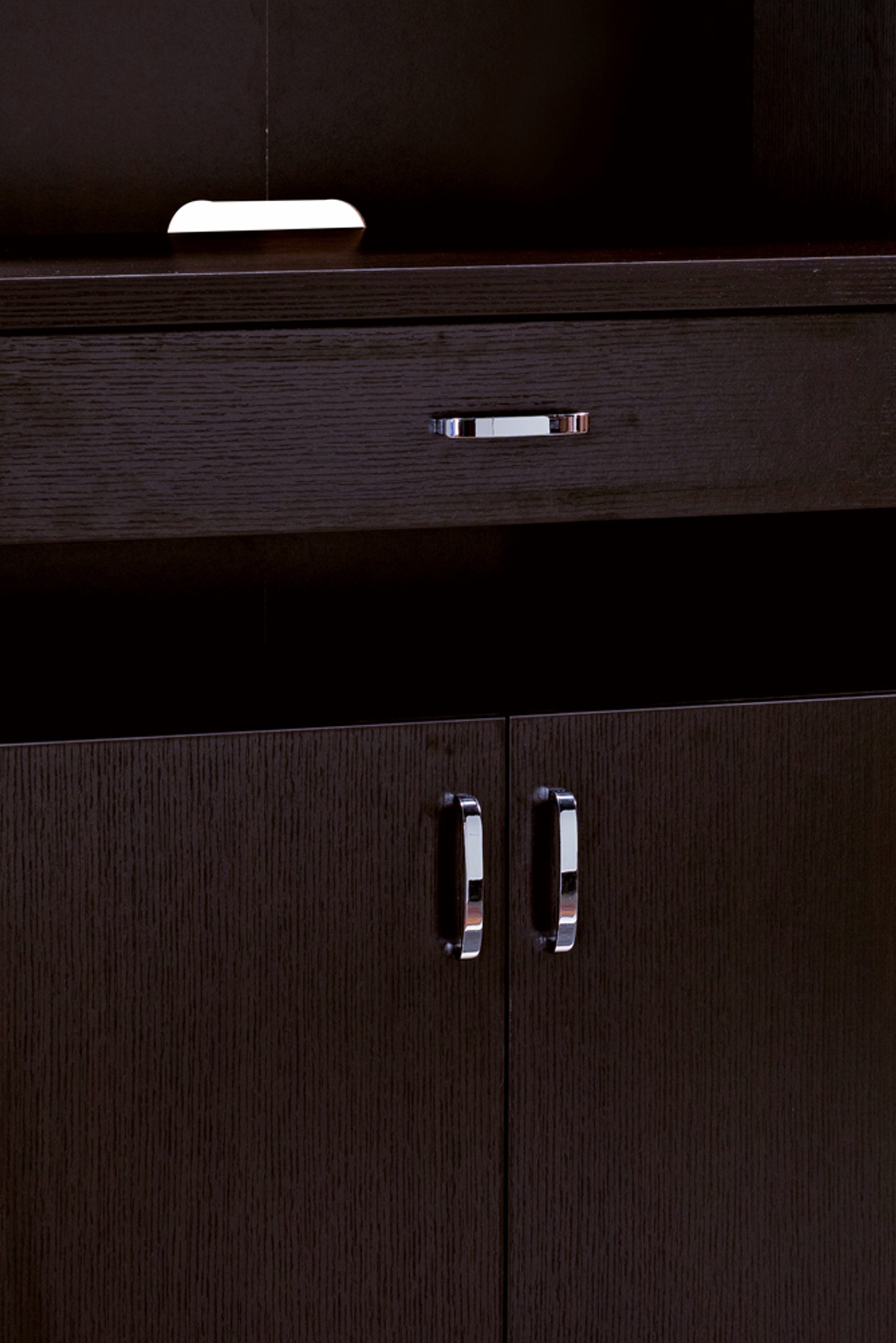 Enhance the aesthetics of your dining area with the setting up of this bakers cabinet. Constructed sturdily from wood and MDF in red cocoa finish, it features 3 open shelves, 1 drawer and a 2 door cabinet that opens up to reveal 2 spacious compartments inside. Supported on tapered legs for added stability, the bakers cabinet offers an organized place for your dining necessities and can also be used for decorative display.