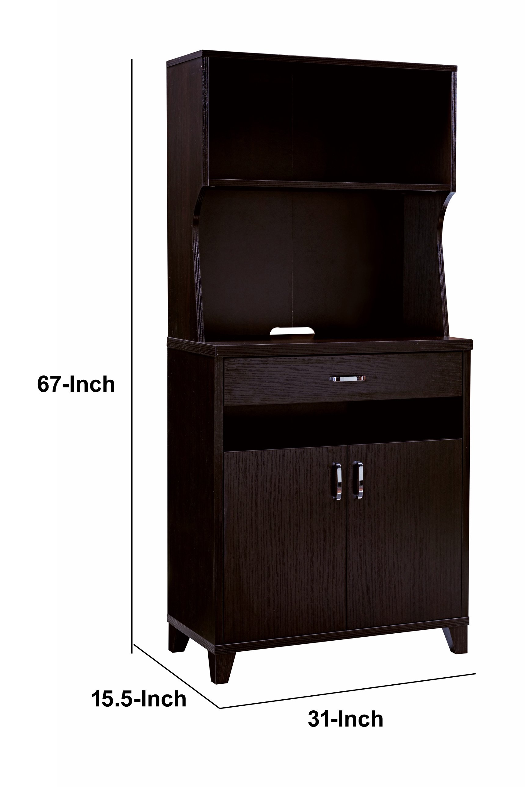 Home > Wooden 2 Door Bakers Cabinet with 3 Open Shelves and 1 Drawer, Brown