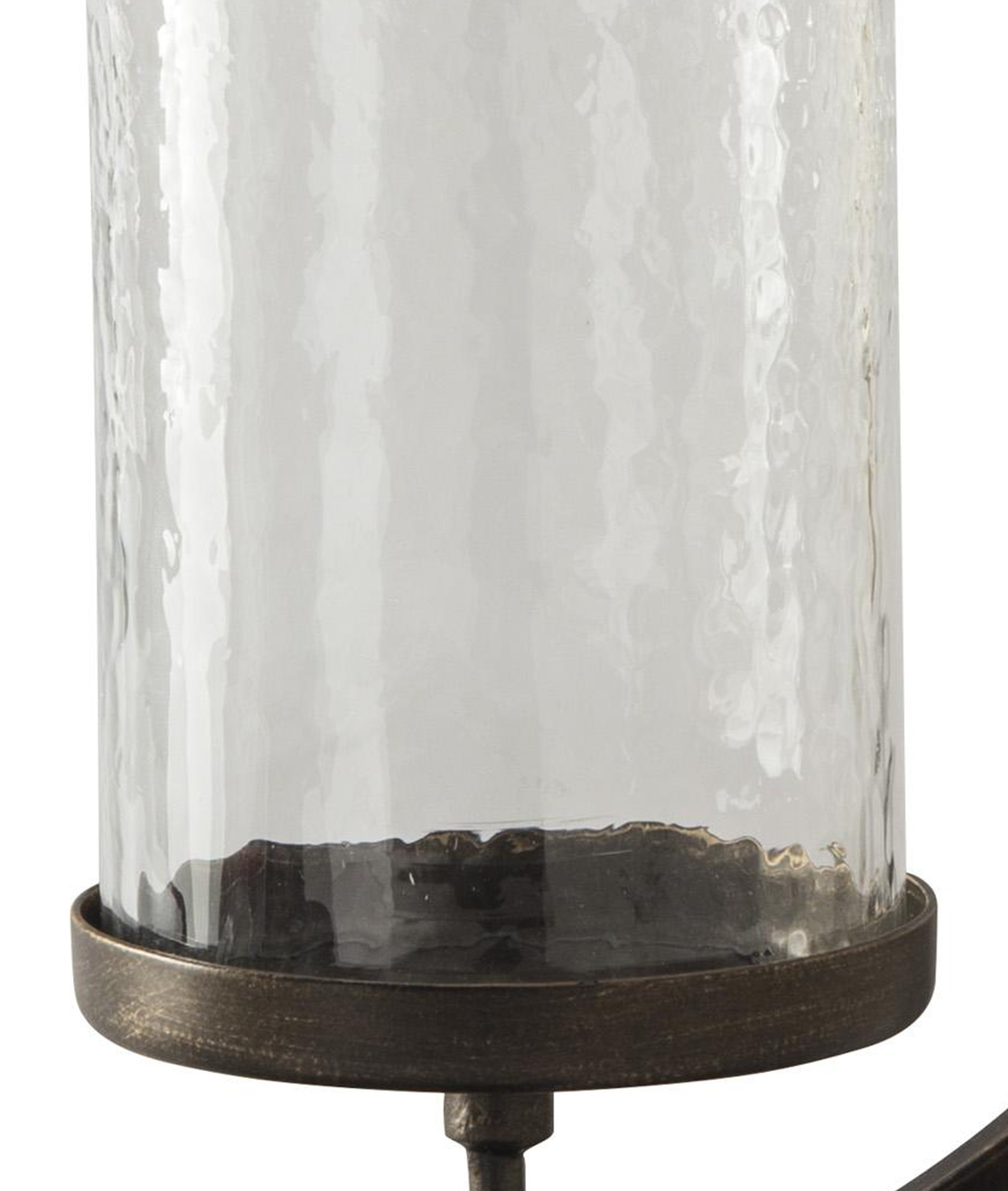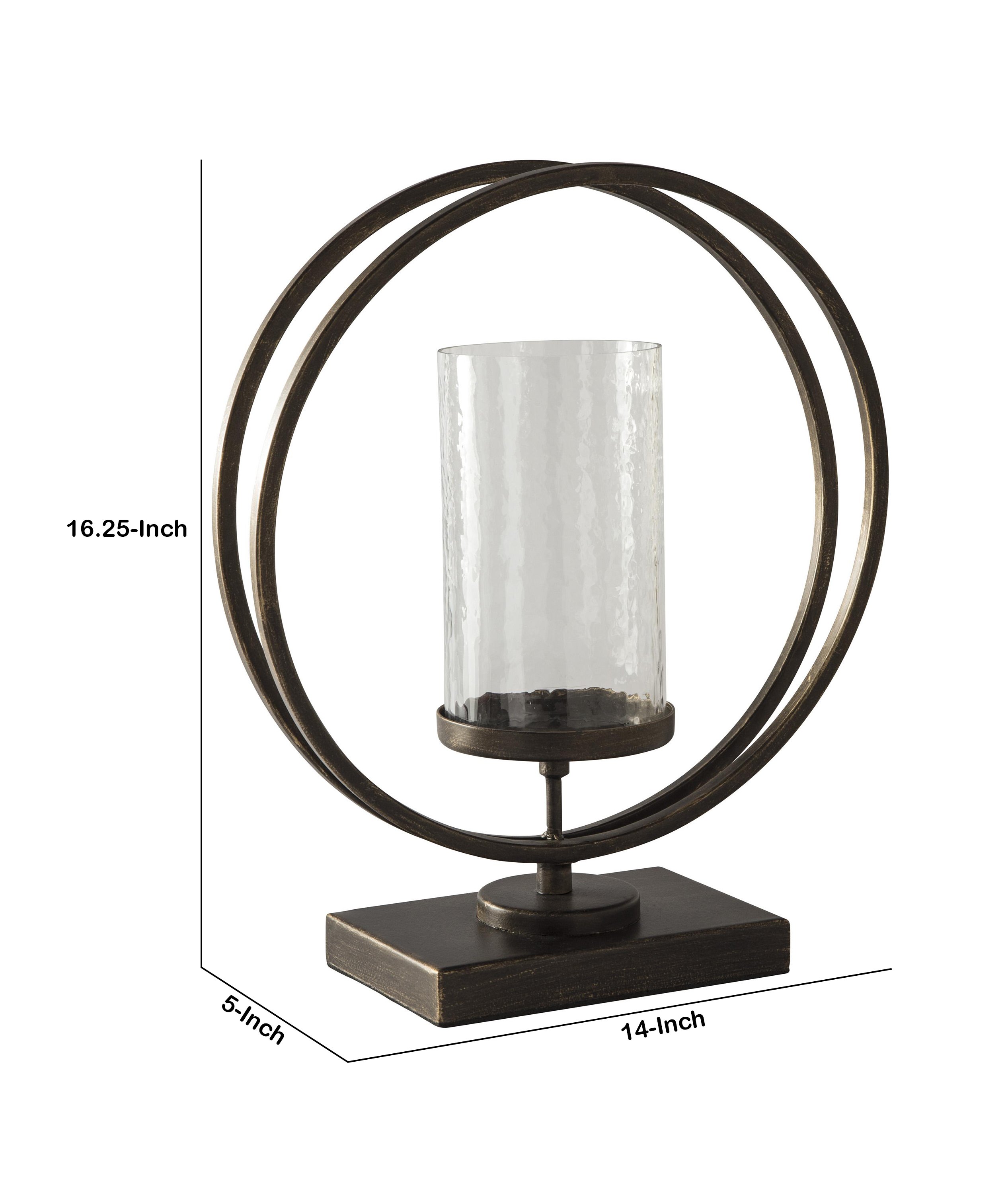 Round Metal Candle Holder with Rectangular Base, Brown and Clear