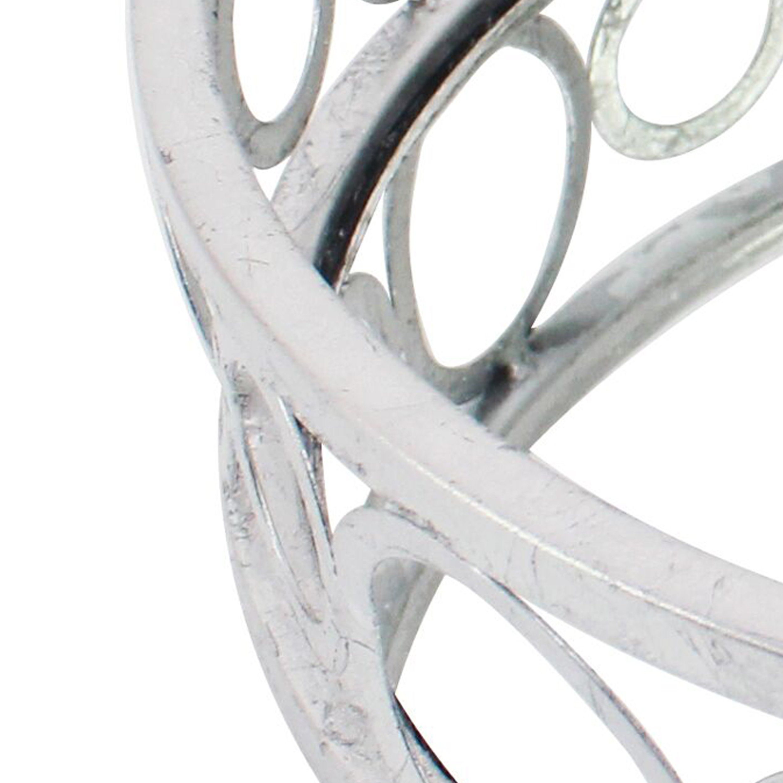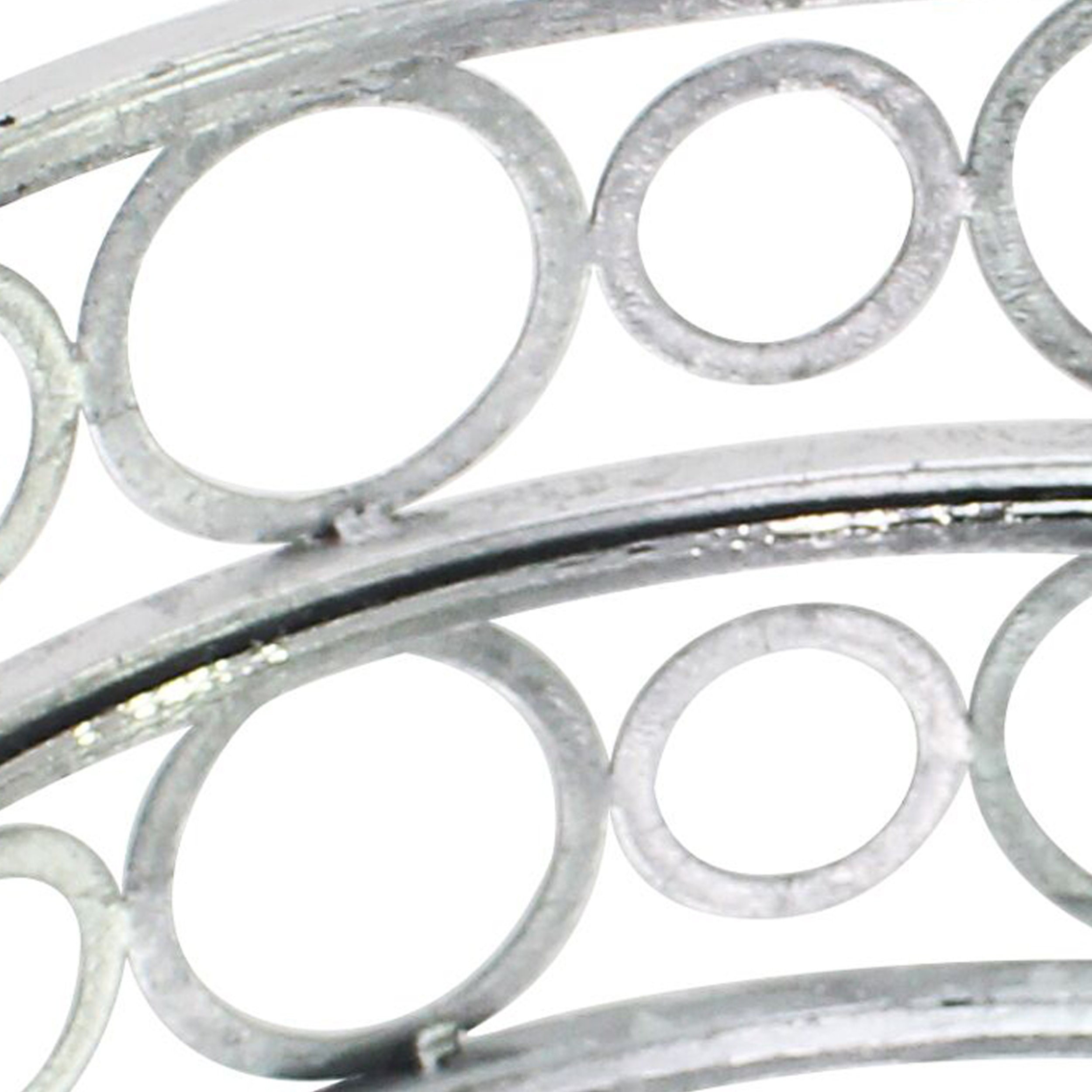 Revamp your kitchen and dining space with the addition of this contemporary style tray, featuring a round shape with geometric mirror panel inserts. Constructed from metal, it is accented in the hue of silver. Encompassed with metal curls, it can be used as center pieces of your dining table. It will not only serve the best of its purpose but will also enhance the overall aesthetics of your existing decor.
