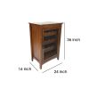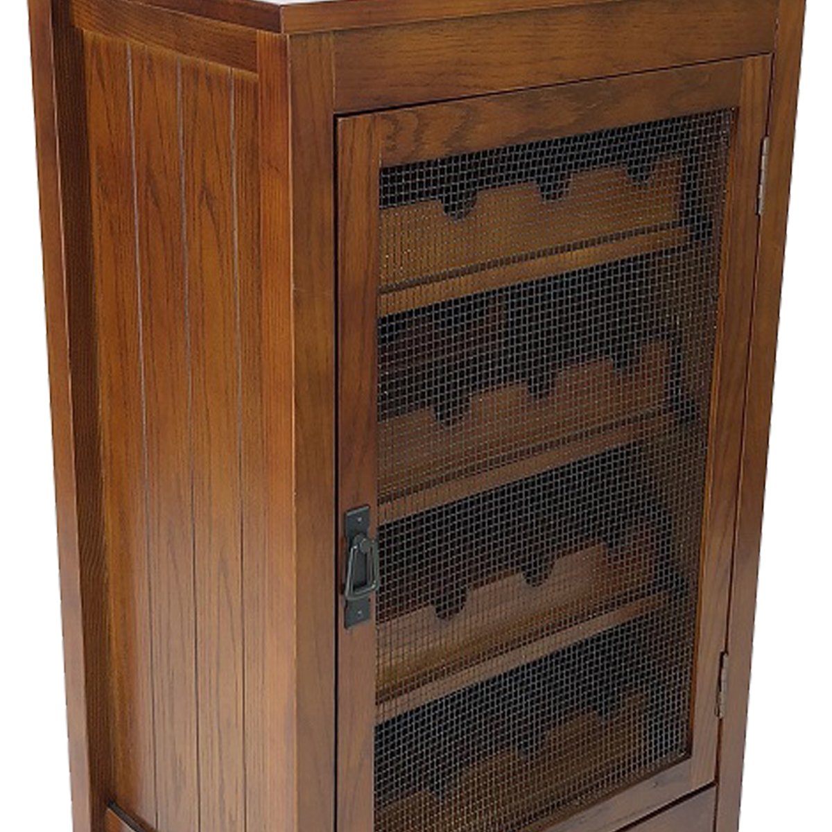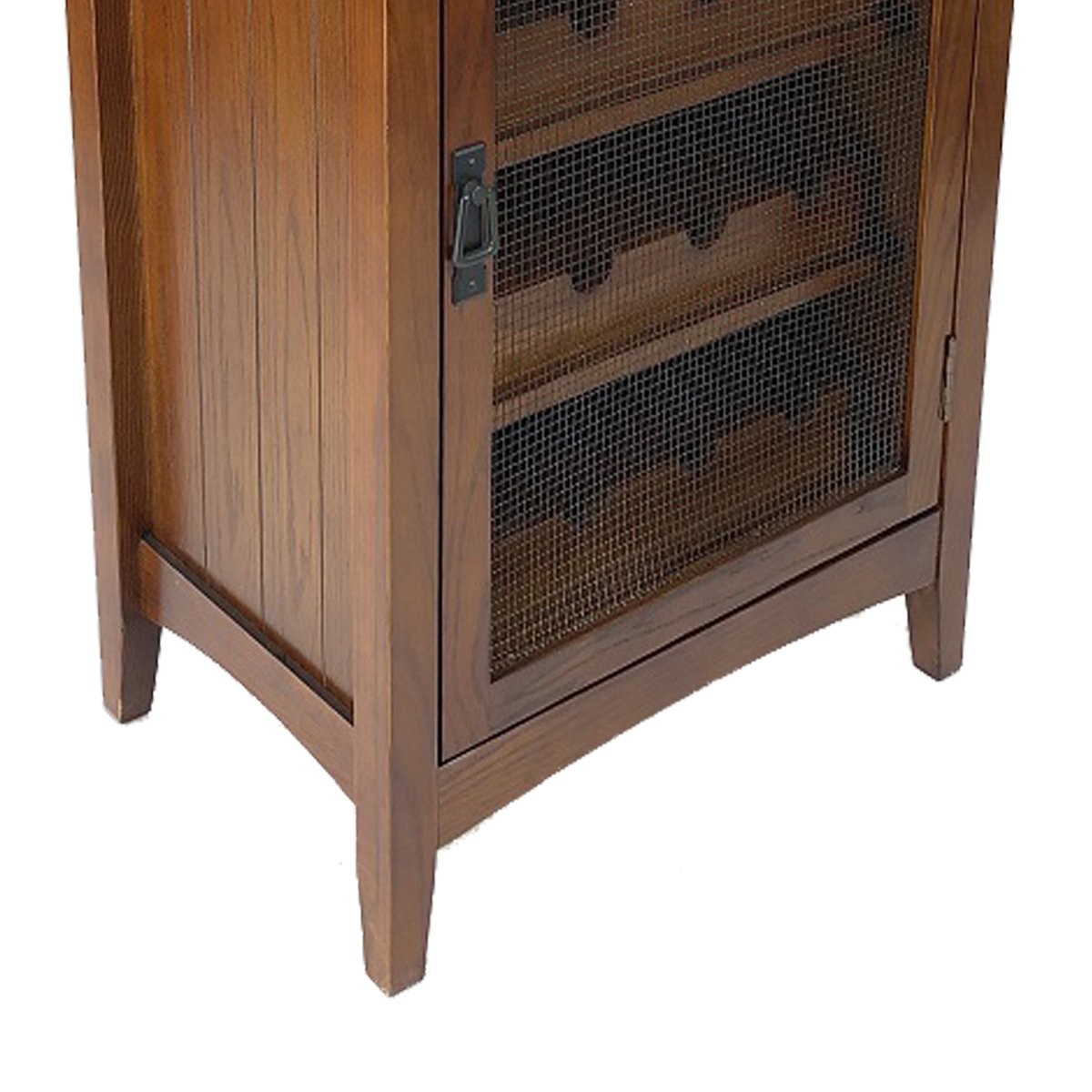 Add a sophisticated storage for wine bottles by incorporating this coveted transitional style Wine Cabinet, featuring 1 wire mesh door which opens to reveal 4 shelves with bottle holding capacity of 16. Constructed from oak wood frame, it is accented with oak brown finish.