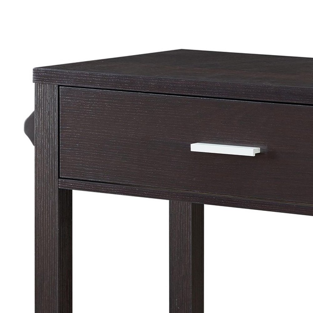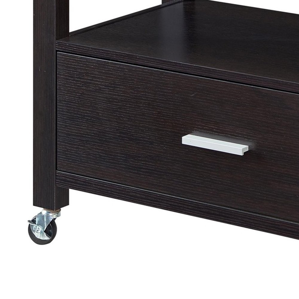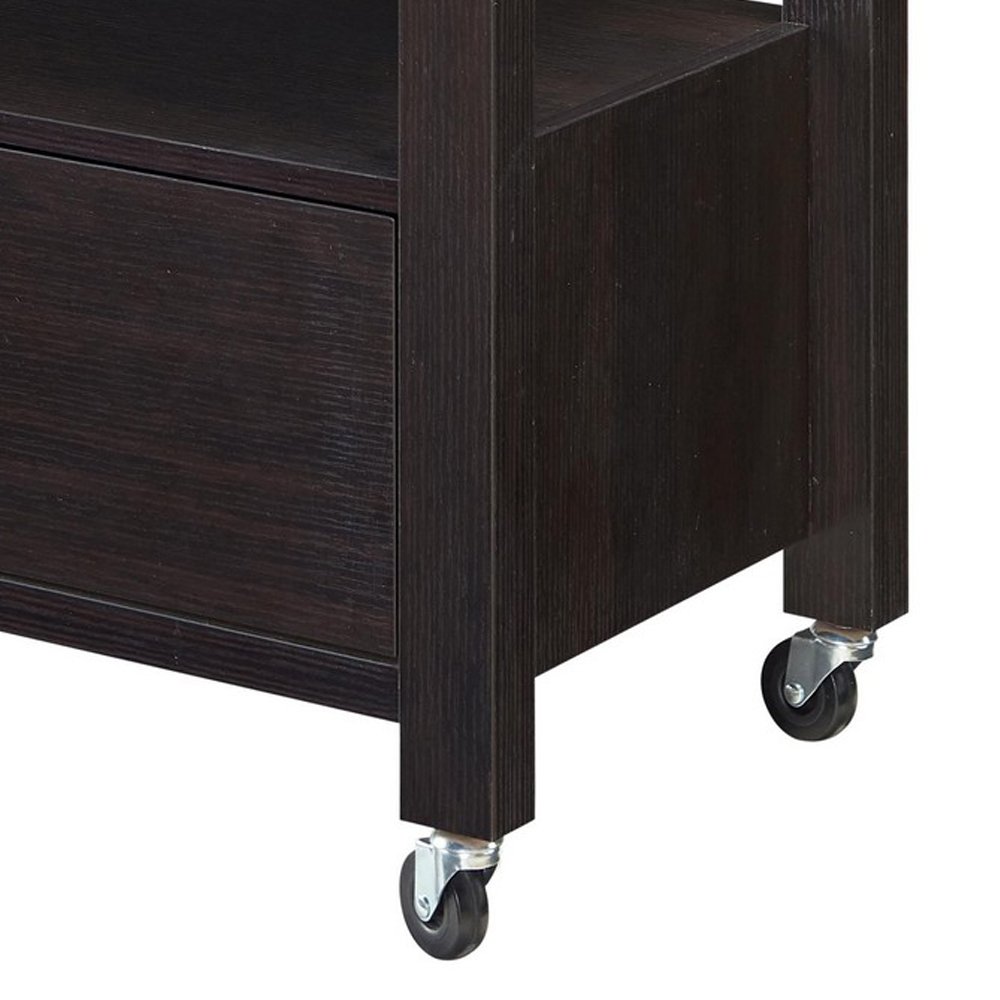 2 Drawer Wooden Kitchen Cart with Casters and 1 Open Shelf, Dark Brown