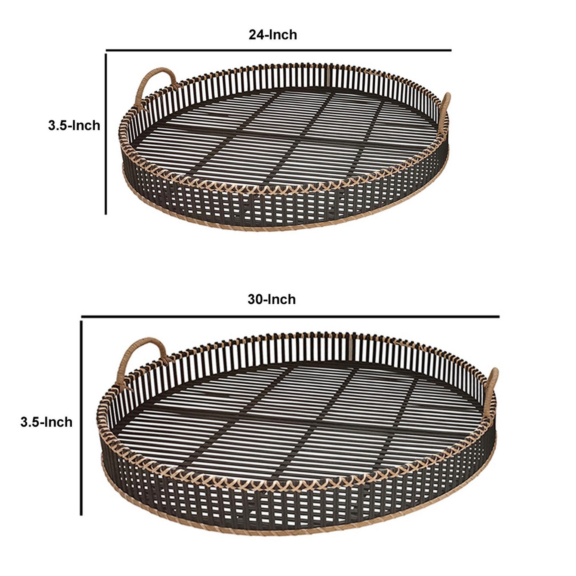 Round Shaped Bamboo Tray with Curved Handle, Set of 2, Black