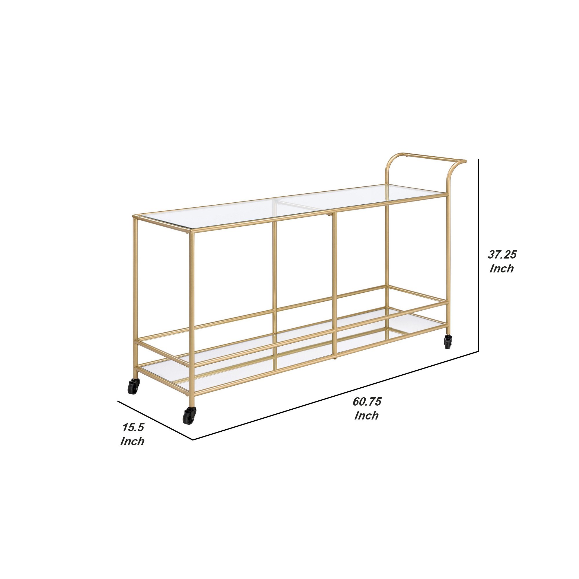 Serving Cart with 2 Tier Design and Metal Frame, Gold
