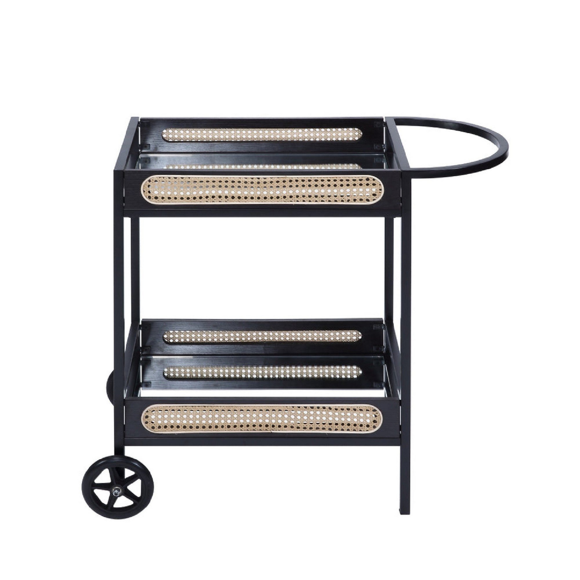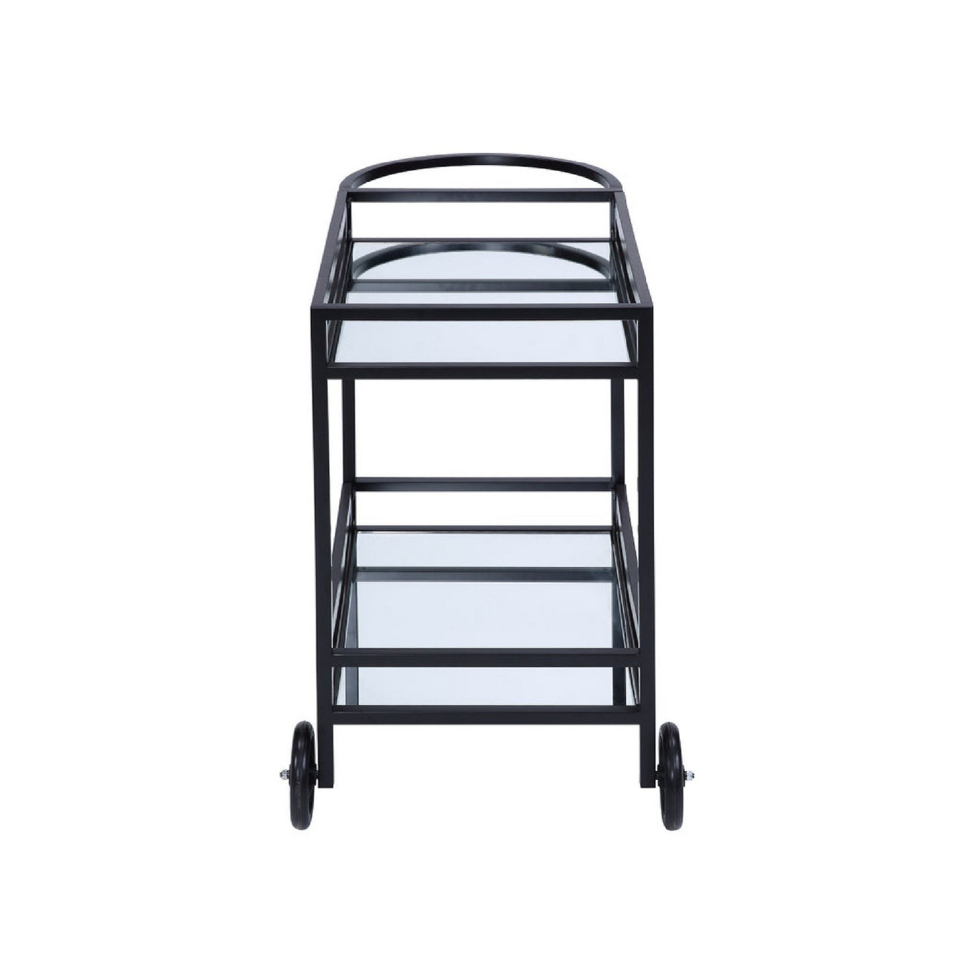 With a blend of glass and wood, this serving cart is sure to add a sense of timeless elegance to your household. This modern piece comes with two mirror shelves that provides a compact space to serve drinks and snacks. The two wheel base adds to both the functionality of the piece and its high brow aesthetic.