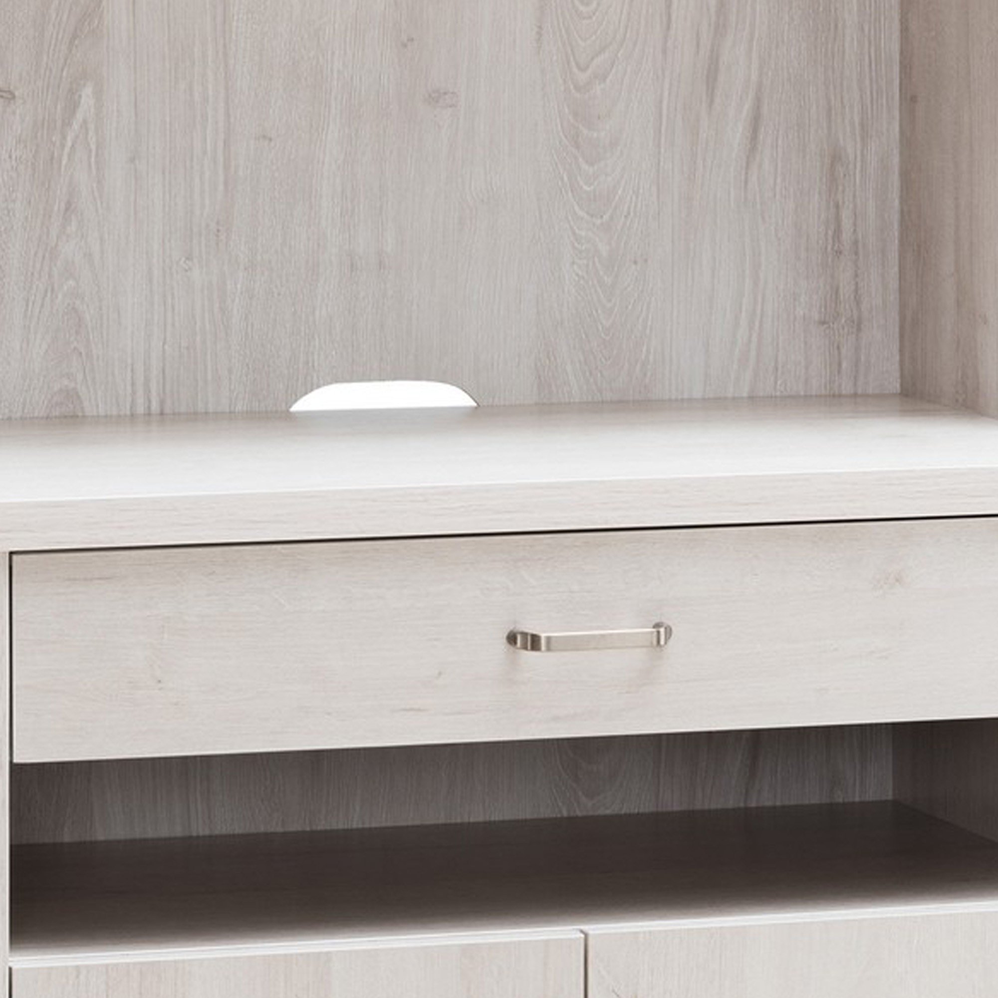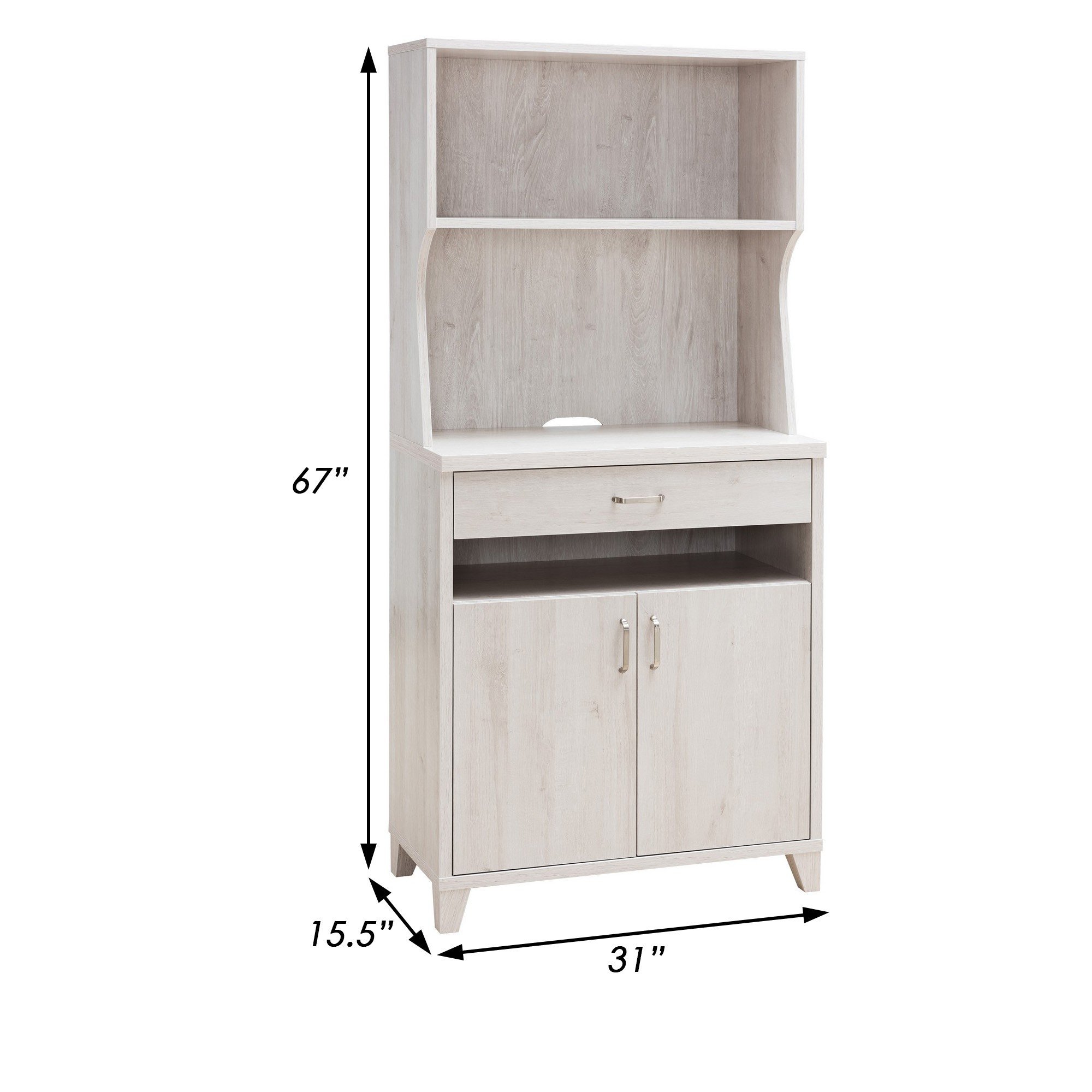 Add contemporary allure to your kitchen with this gorgeously elegant bakers cabinet. Embellished in a rustic white finish, its quality composite wood construction ensures long term usability while a spacious open shelf, center drawer, and two door bottom cabinet provide ample storage and surface space to truly transform your kitchen into a bakers kitchen.