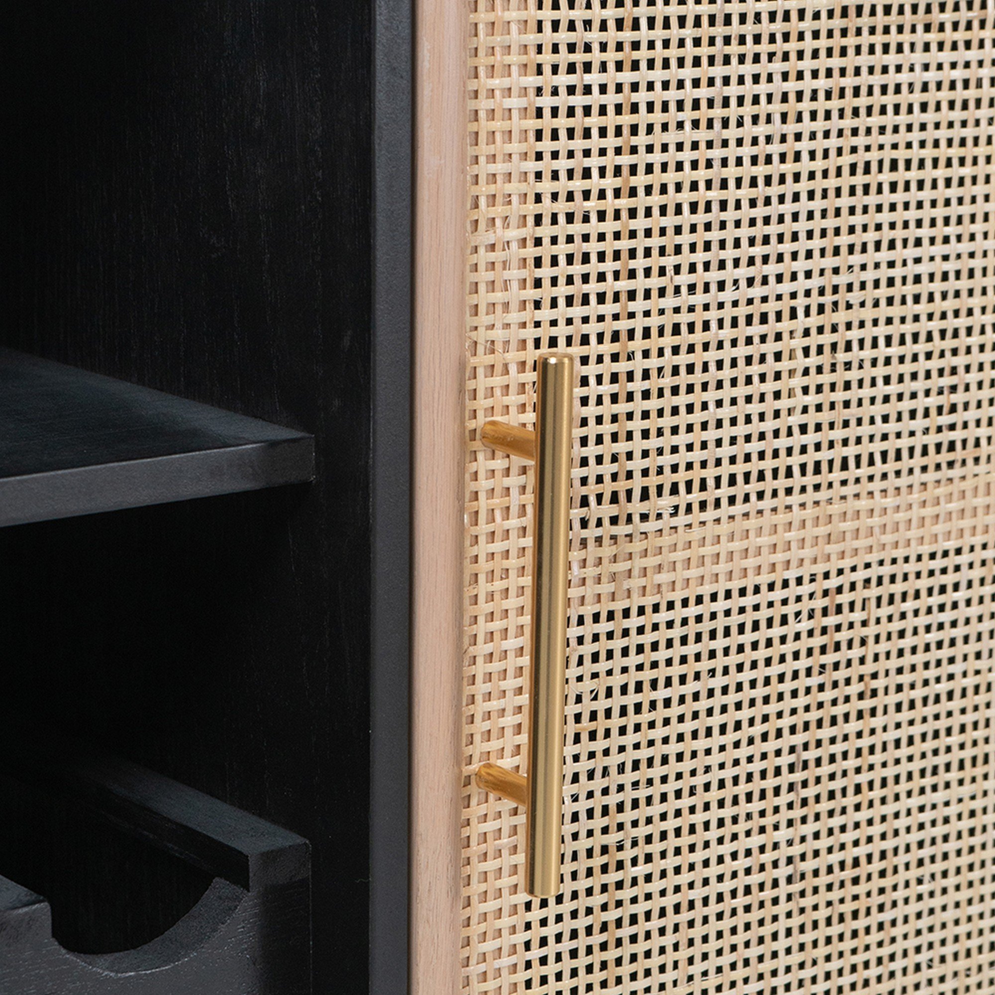 Dana 31 Inch Wood Wine Cabinet, 2 Shelves, 11 Racks, Rattan Door, Black