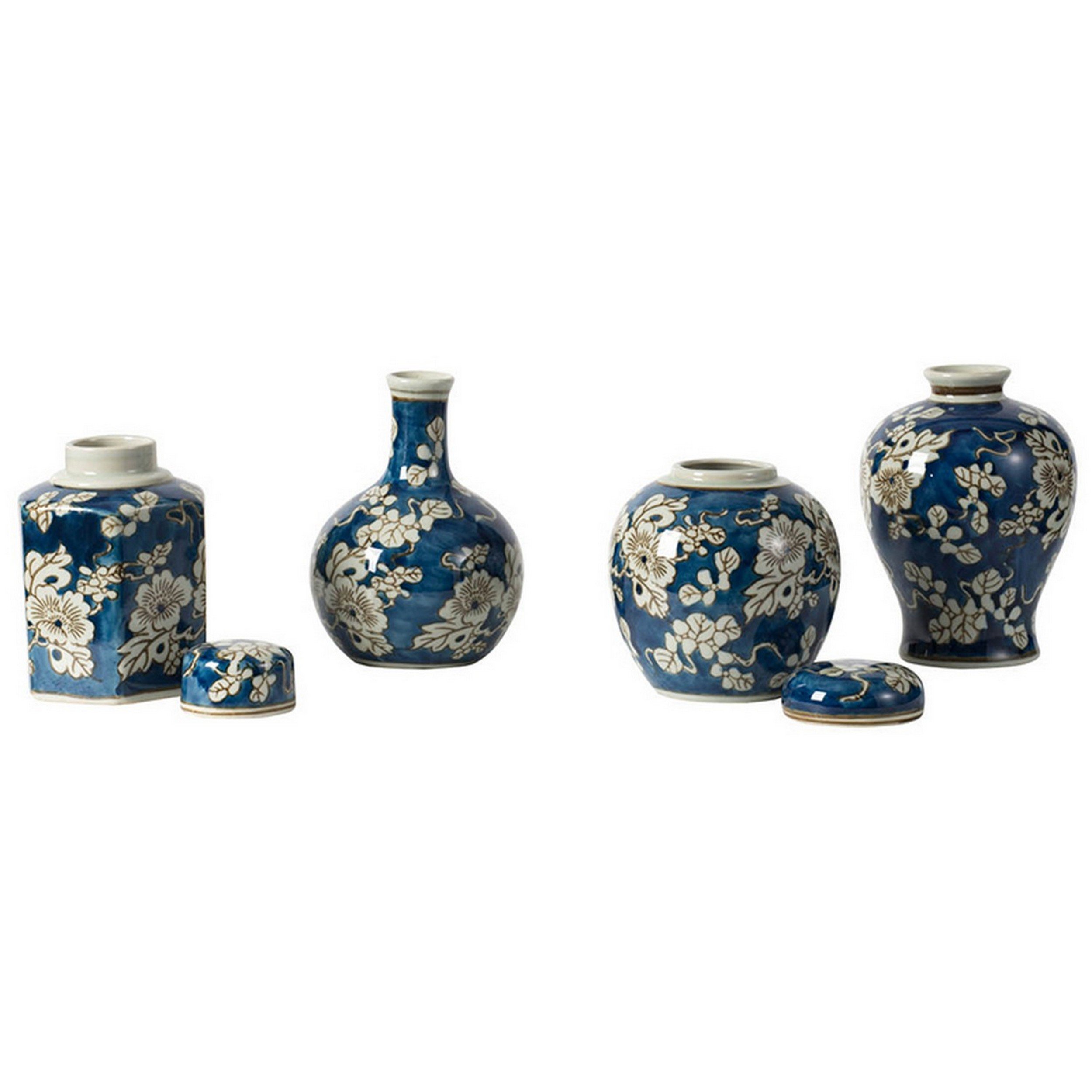 Set of 4 Lidded Jars and Vases, Classic Curved Round Blue and White Ceramic Set of 4 Lidded Jars and Vases, Classic Curved Round Blue and White Ceramic Set of 4 Lidded Jars and Vases, Classic Curved Round Blue and White Ceramic Set of 4 Lidded Jars and Vases, Classic Curved Round Blue and White Ceramic Set of 4 Lidded Jars and Vases, Classic Curved Round Blue and White Ceramic