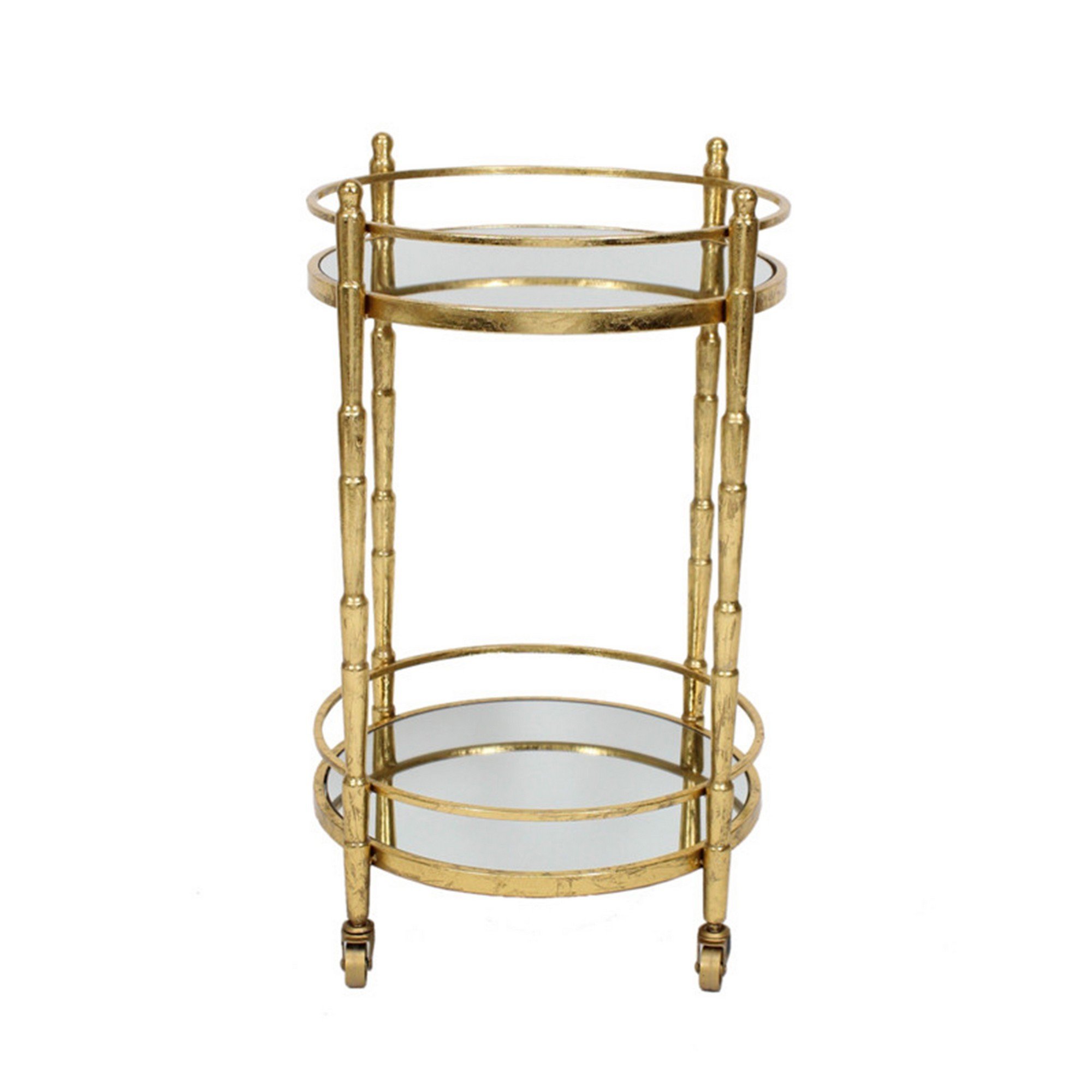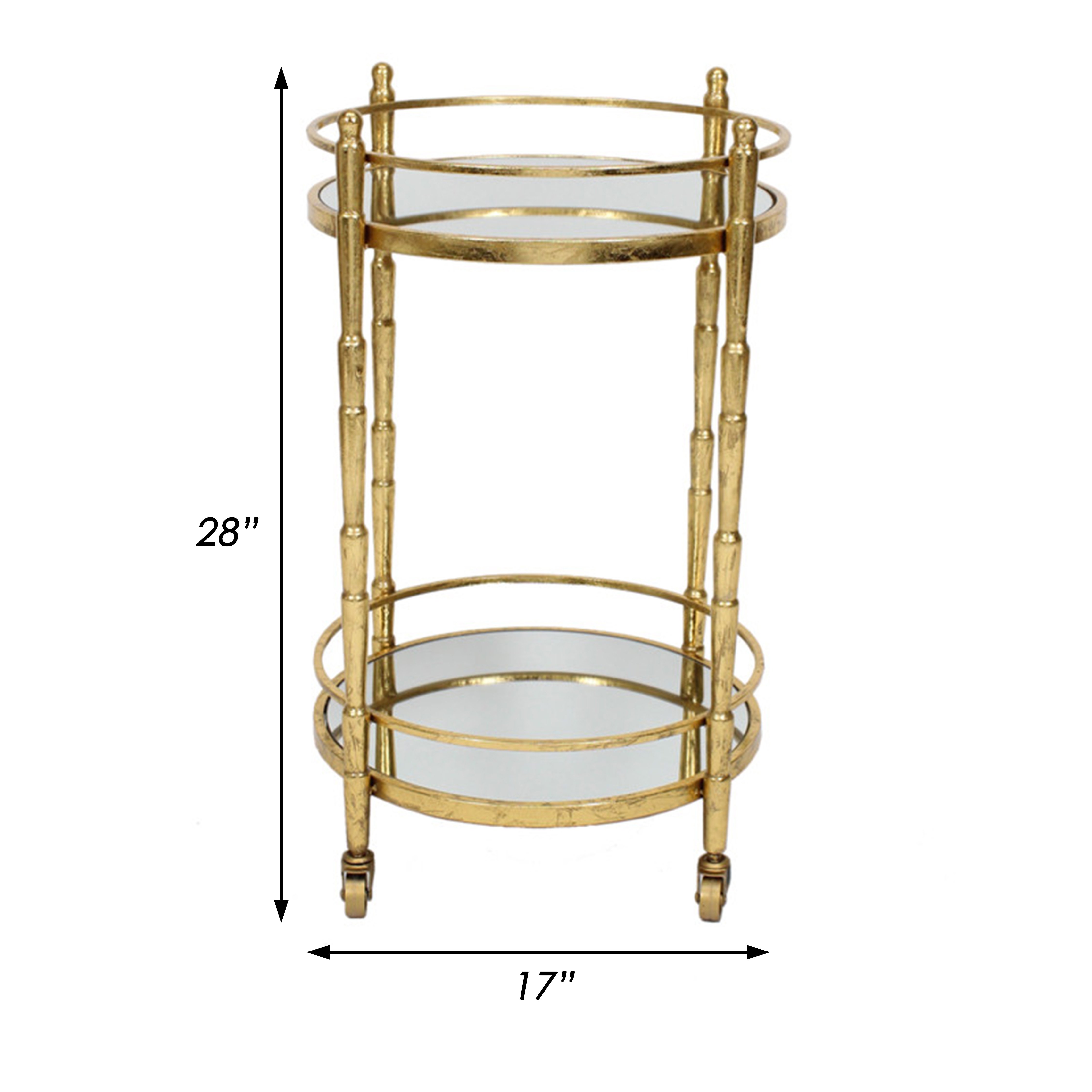 Home > Kai 28 Inch 2 Tier Modern Rolling Bar Cart, Spindle Round Metal Frame, Gold
