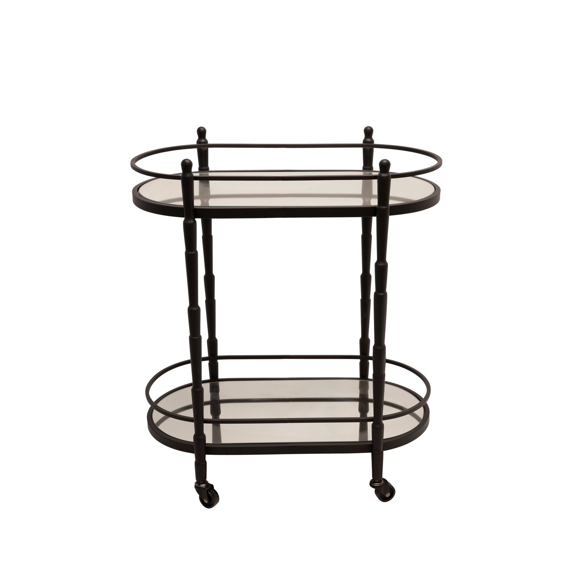 Home > Kai 28 Inch 2 Tier Modern Rolling Bar Cart, Classic Oval Metal Frame, Black