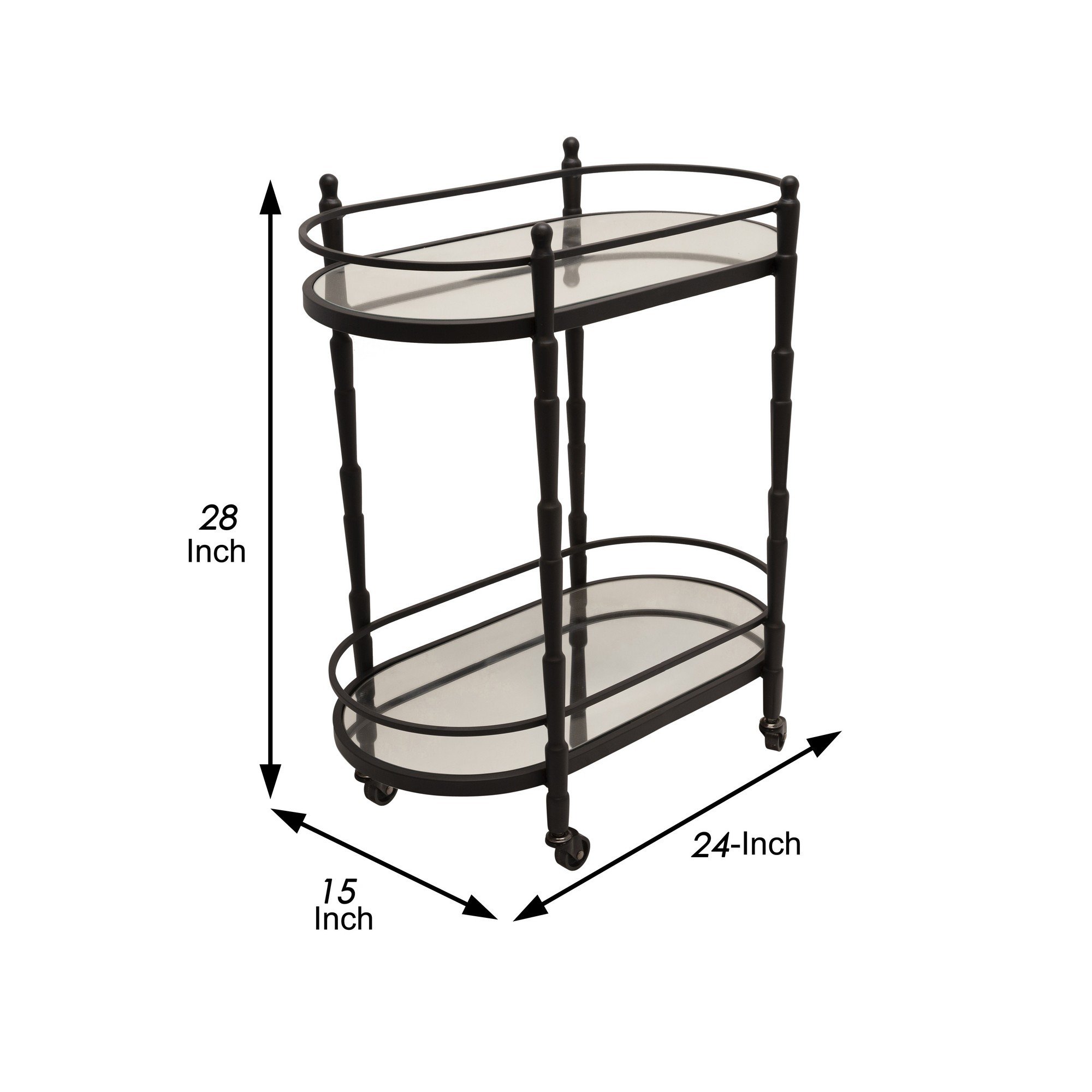 Kai 28 Inch 2 Tier Modern Rolling Bar Cart, Classic Oval Metal Frame, Black