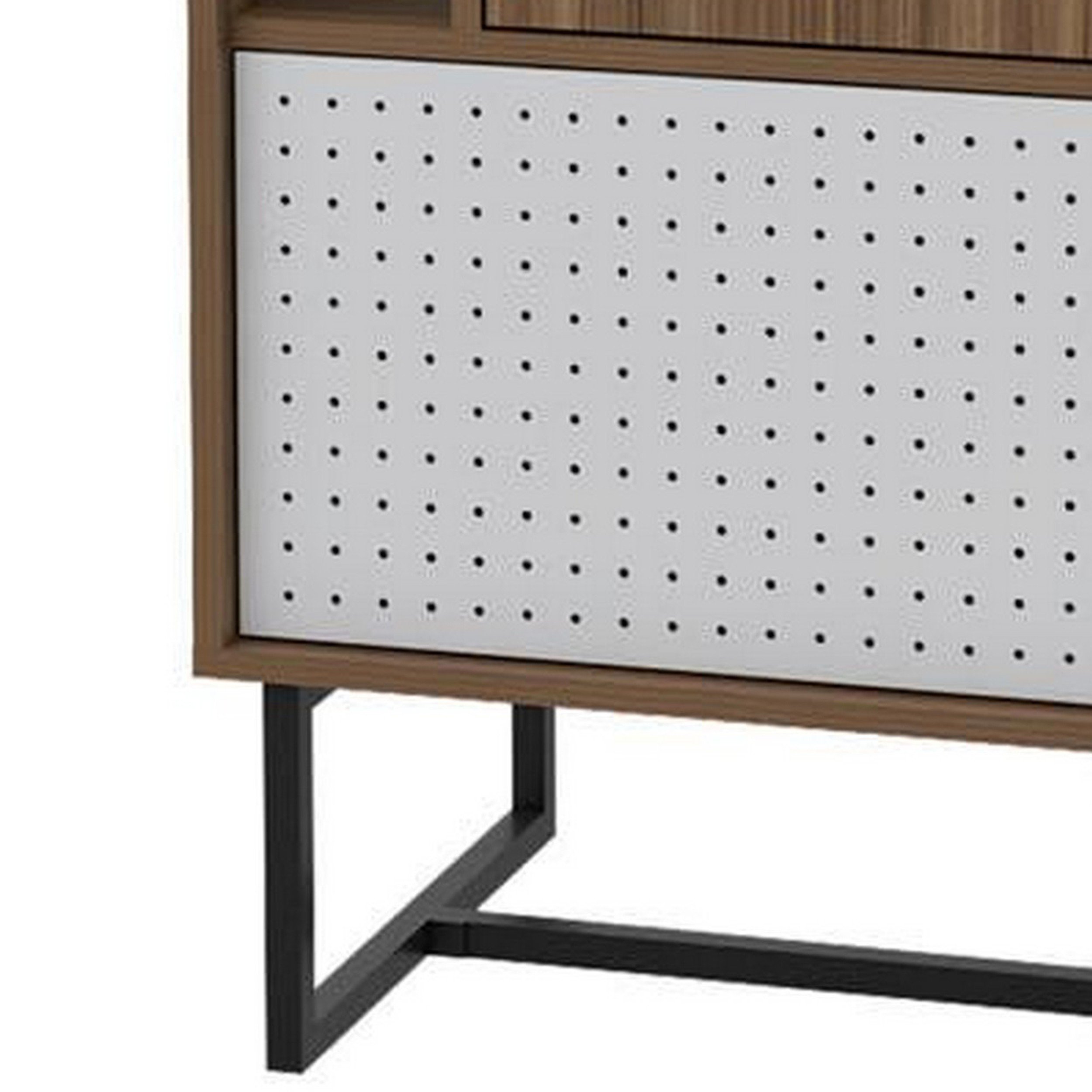 Nio 46 Inch Freestanding Bar Cabinet, Perforated Metal Door, Mahogany Brown