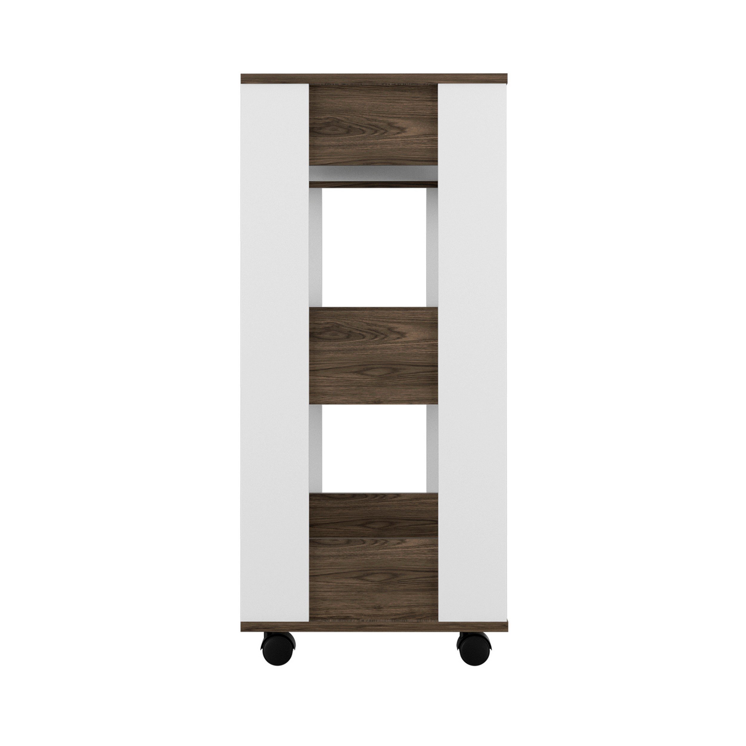 You can compartmentalize your kitchen for both comfort and class with this gorgeous rolling kitchen bar cart. With two shelves and a protective metal rod to secure glass bottles and crockeries, this kitchen cart boasts both utility and form with wood grain details and a white finish so you can level up the practicality and poise of your kitchen perfectly.