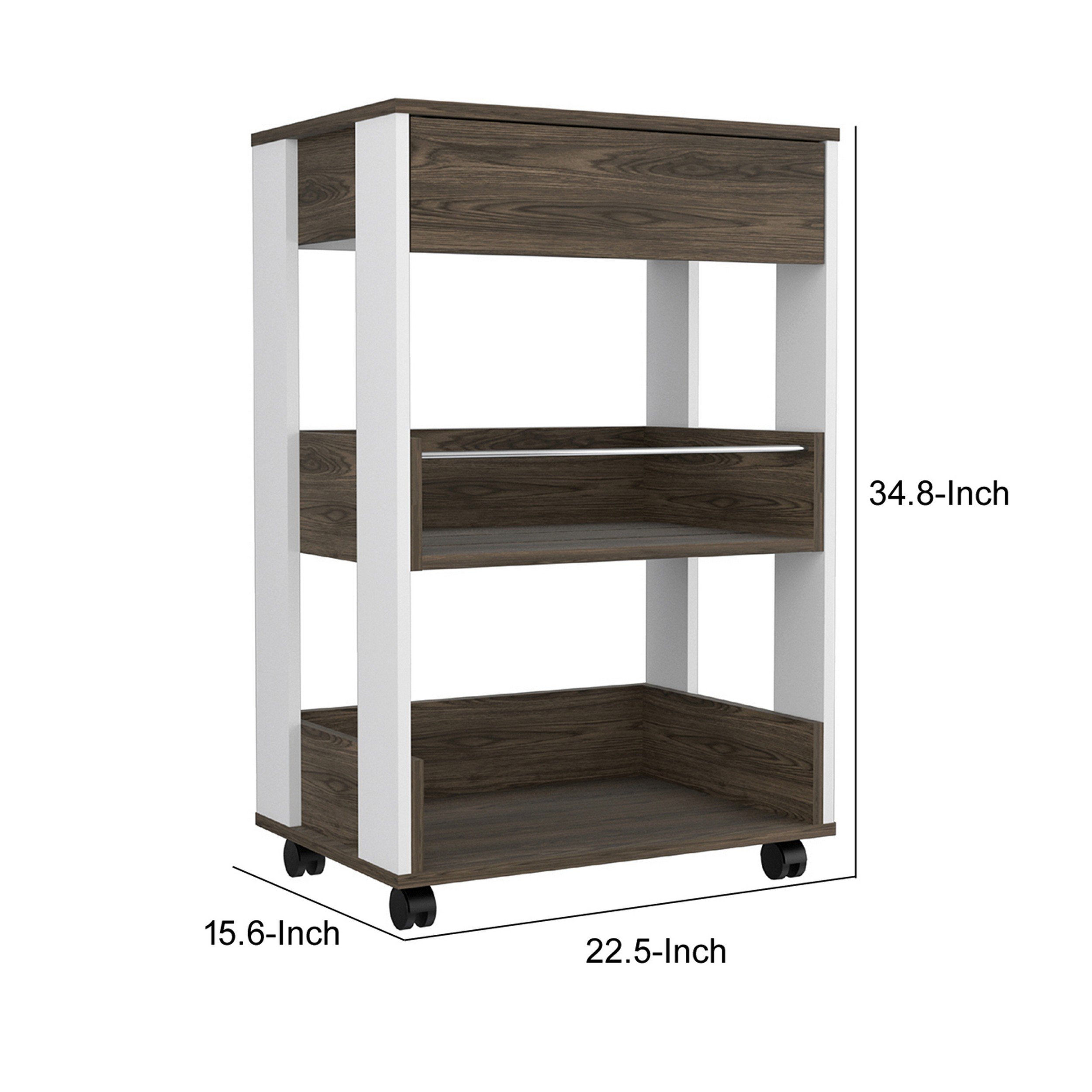 Home > 35 Inch Rolling Kitchen Bar Cart, 1 Drawer, Shelves, Grain Details, White