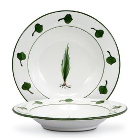 ORVIETO GREEN ROOSTER: Pasta/Soup Rim Plate (White Center)