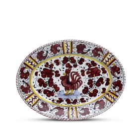 ORVIETO RED ROOSTER: Oval Plate [STRIPED RIM]