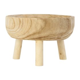 11 Inch Modern Wood Bowl, Three Legs, Clean Lined Design, Round, Brown