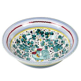 ORVIETO GREEN ROOSTER: Large Pasta/Salad Serving Bowl