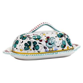 ORVIETO GREEN ROOSTER: Butter Dish w cover
