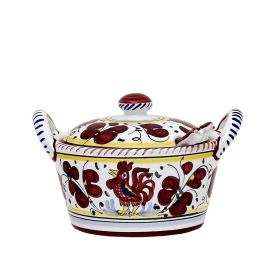 ORVIETO RED ROOSTER: Butter Dish with Cover