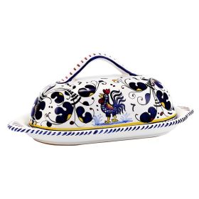 ORVIETO BLUE ROOSTER: Butter Dish with Cover