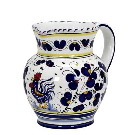 ORVIETO BLUE ROOSTER: Traditional Deruta Pitcher (1.25 Liters/42 Oz/4.5 Cups)