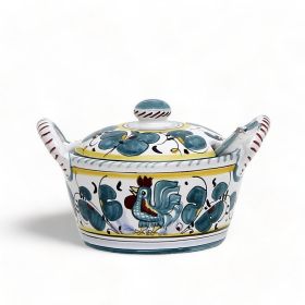 ORVIETO GREEN ROOSTER: Covered Parmesan Cheese Bowl with Spoon