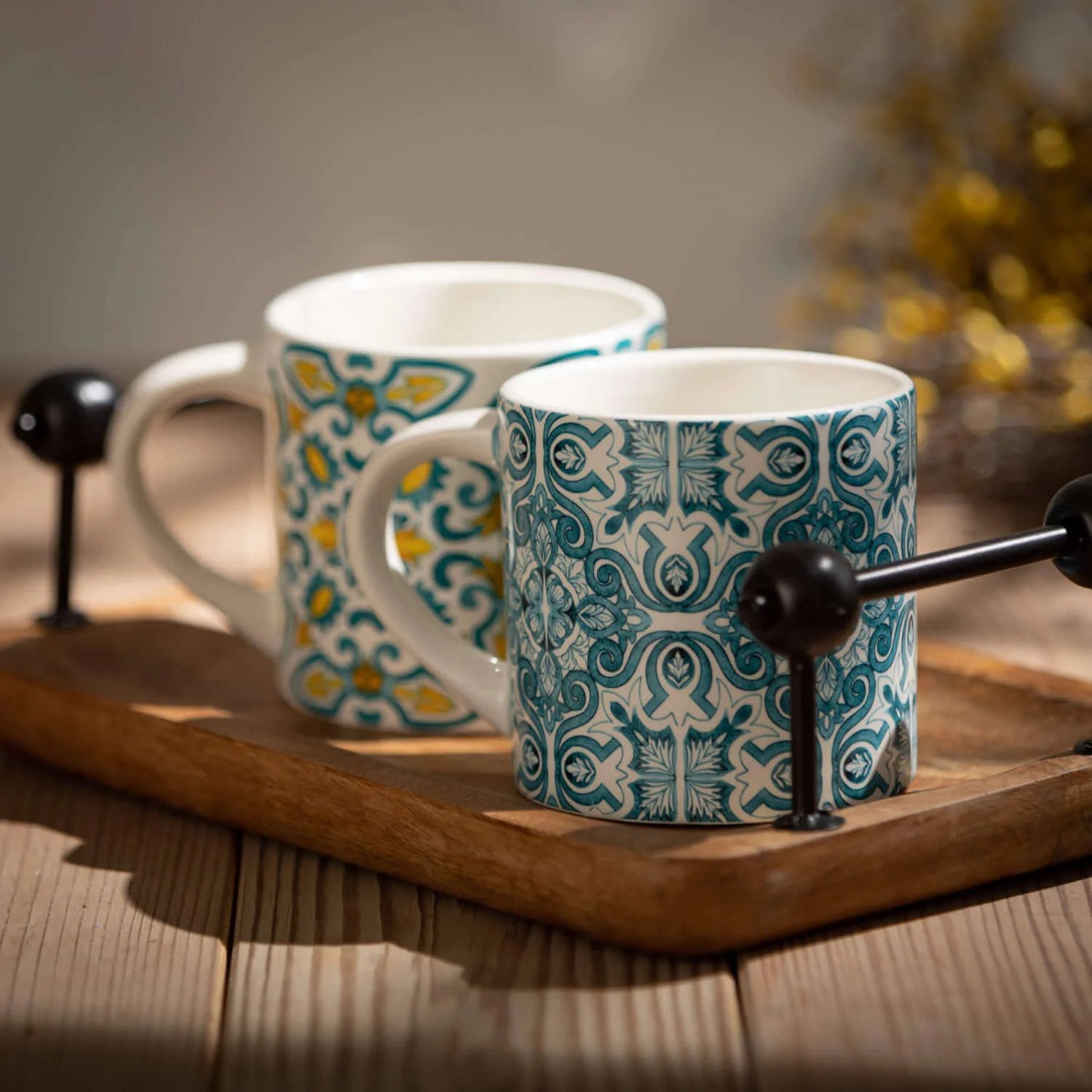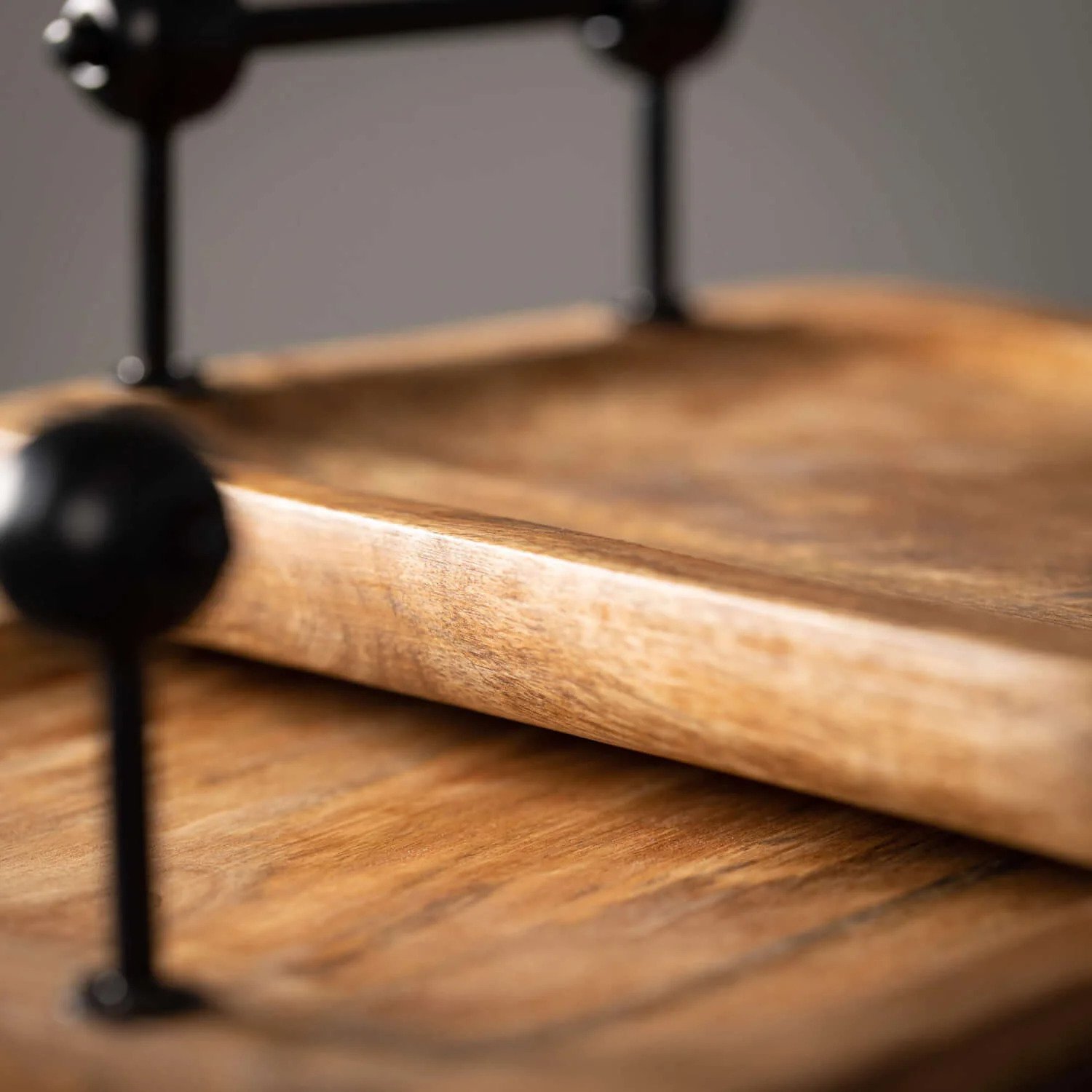 Decorate your space with this pair of rustic wooden trays made from natural rubber wood. Stylish and handsome, this serving piece features hammered metal handles and a unique level of detail.